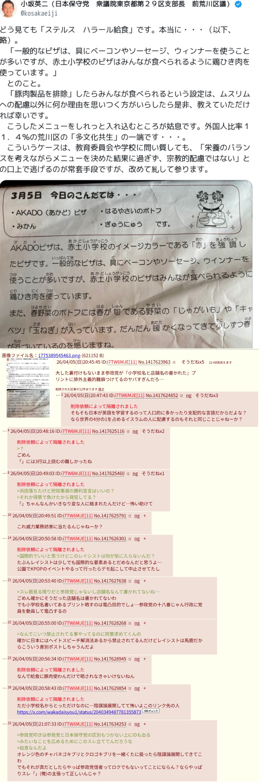 大した裏付けもないまま参政党が『小学校名と店舗名の書かれた』プリントに排外主義的難癖つけてるのヤバすぎんだろ…