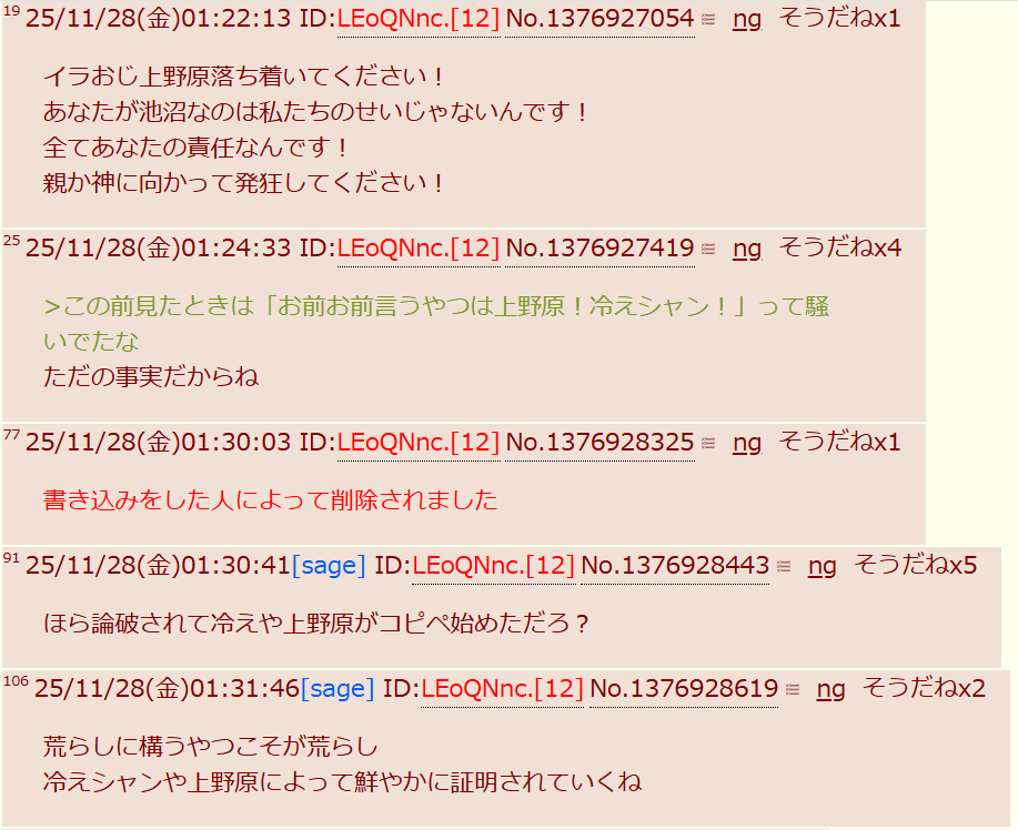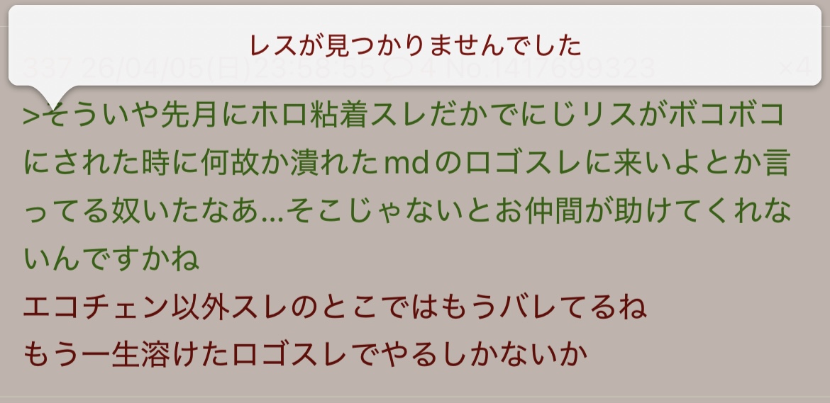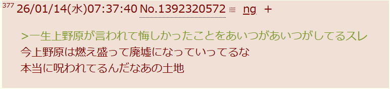 | … | 2026/04/06(月)00:22:34No.1417706355そうだねx1>そもそもの原因は自分が粘着してたからっていう点は都合よく認識できないらしい |