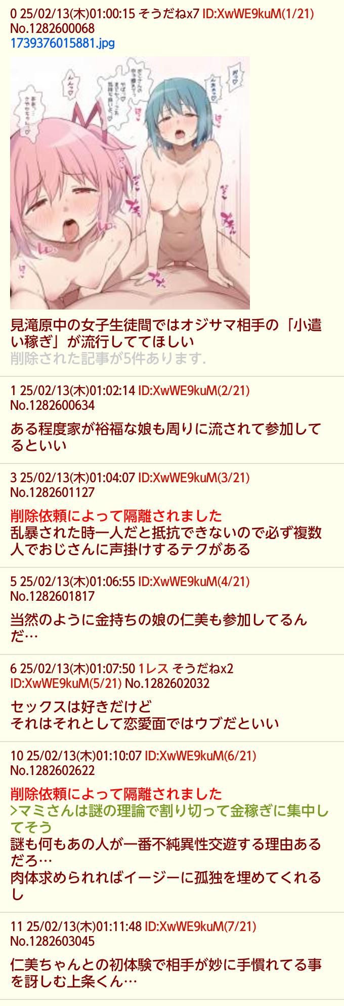 | … | 1126/04/06(月)02:17:56No.1417730541+爆乳JC妹ちゃんはおじさん達に大人気そう |