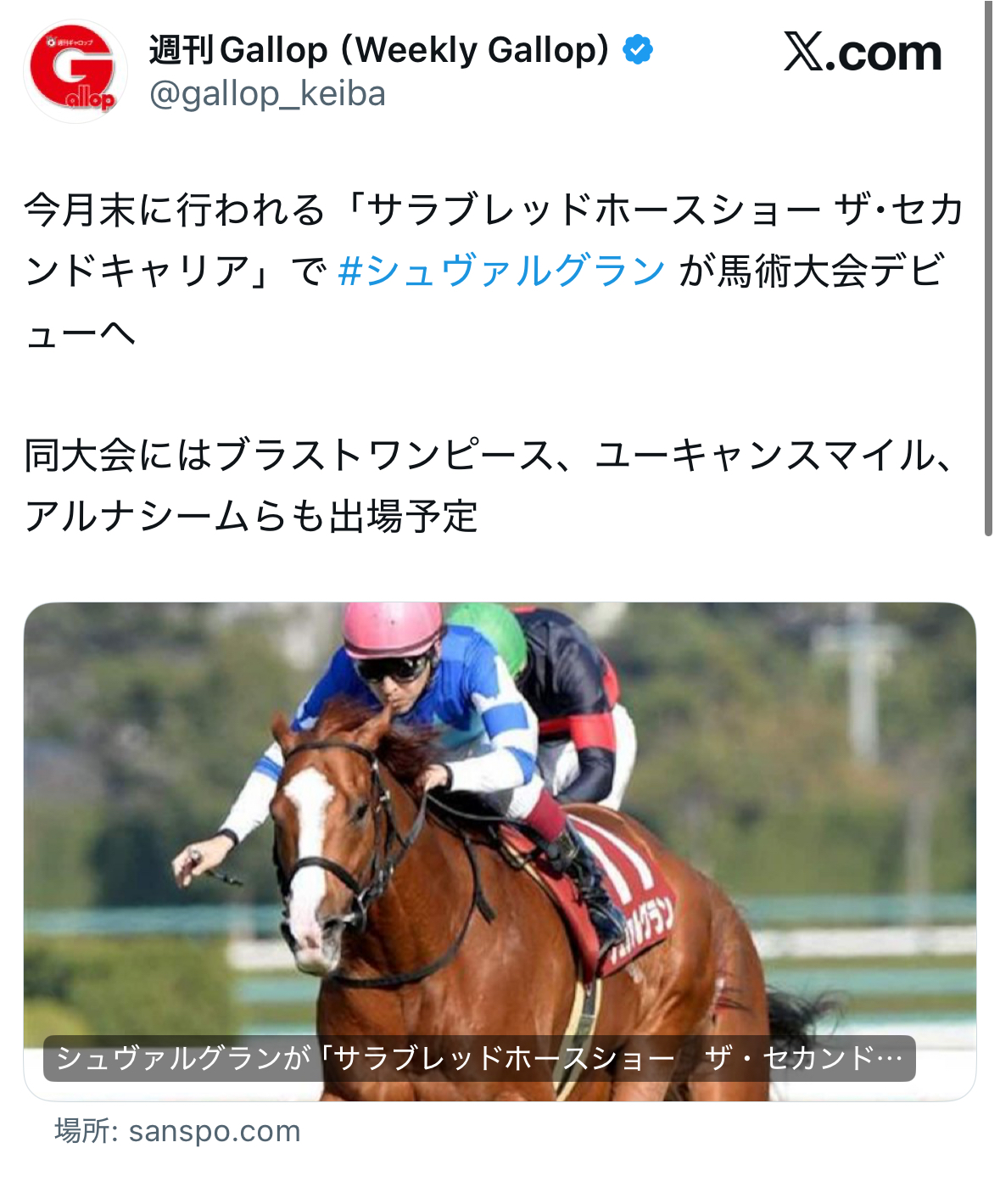 | … | 3526/04/06(月)11:26:45No.1417775813そうだねx3シュヴァちの種牡馬引退つい先日のような気がしましたが |