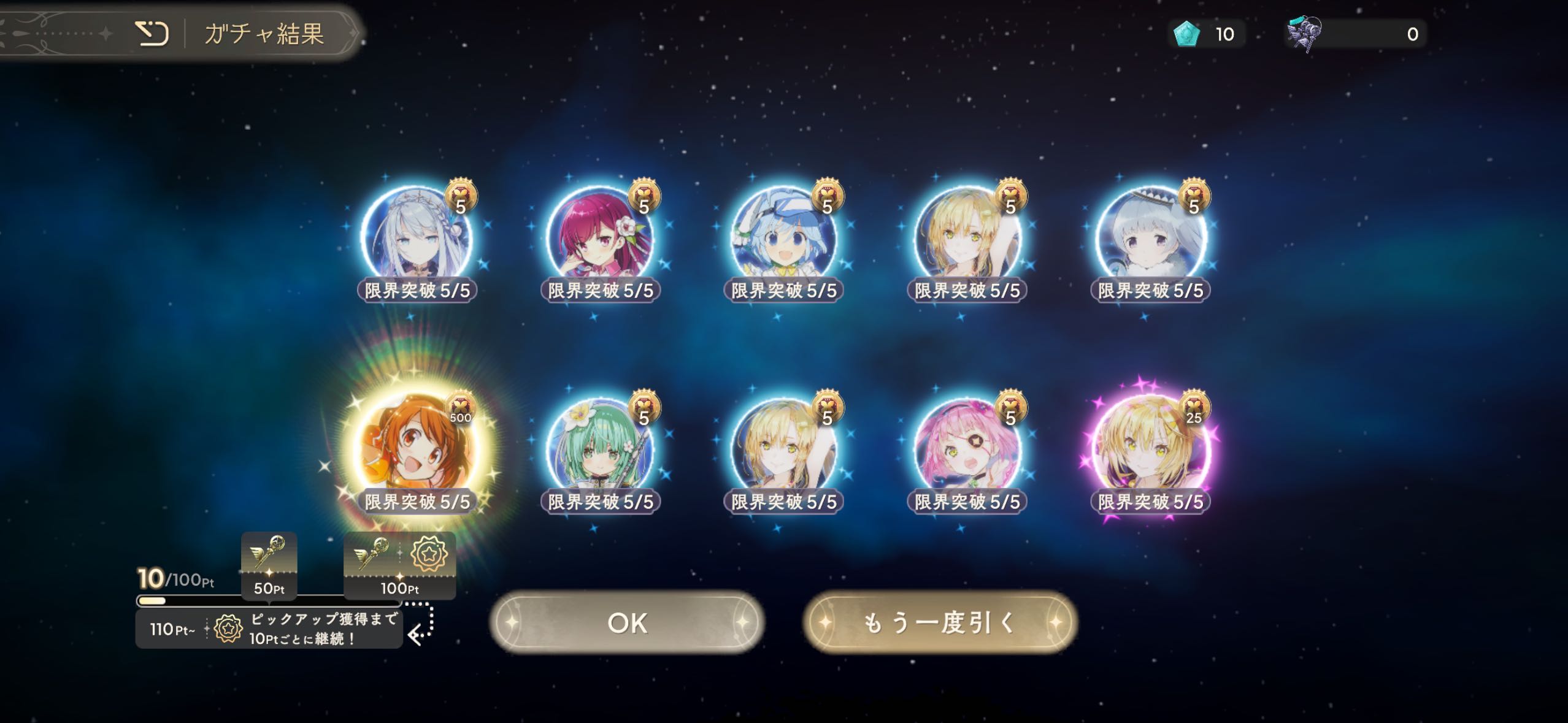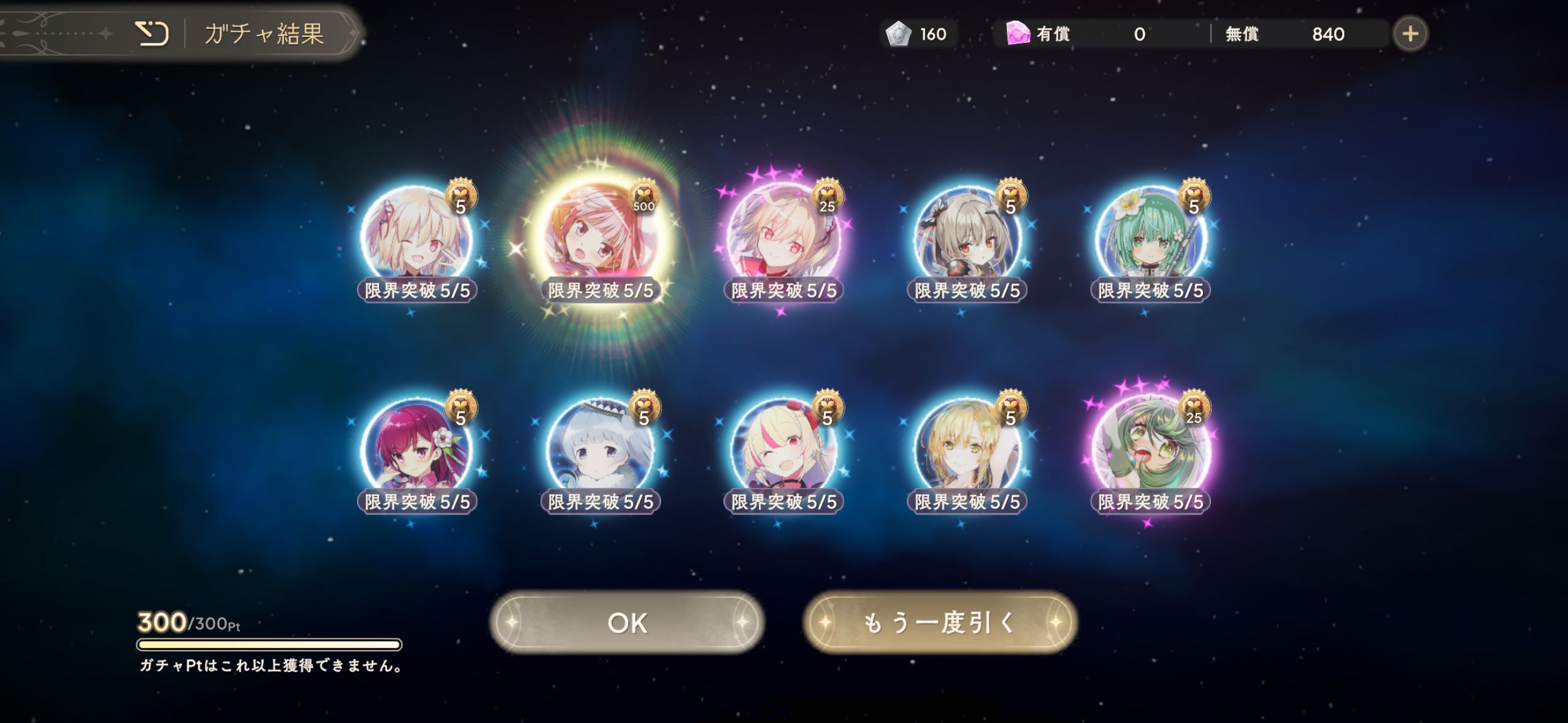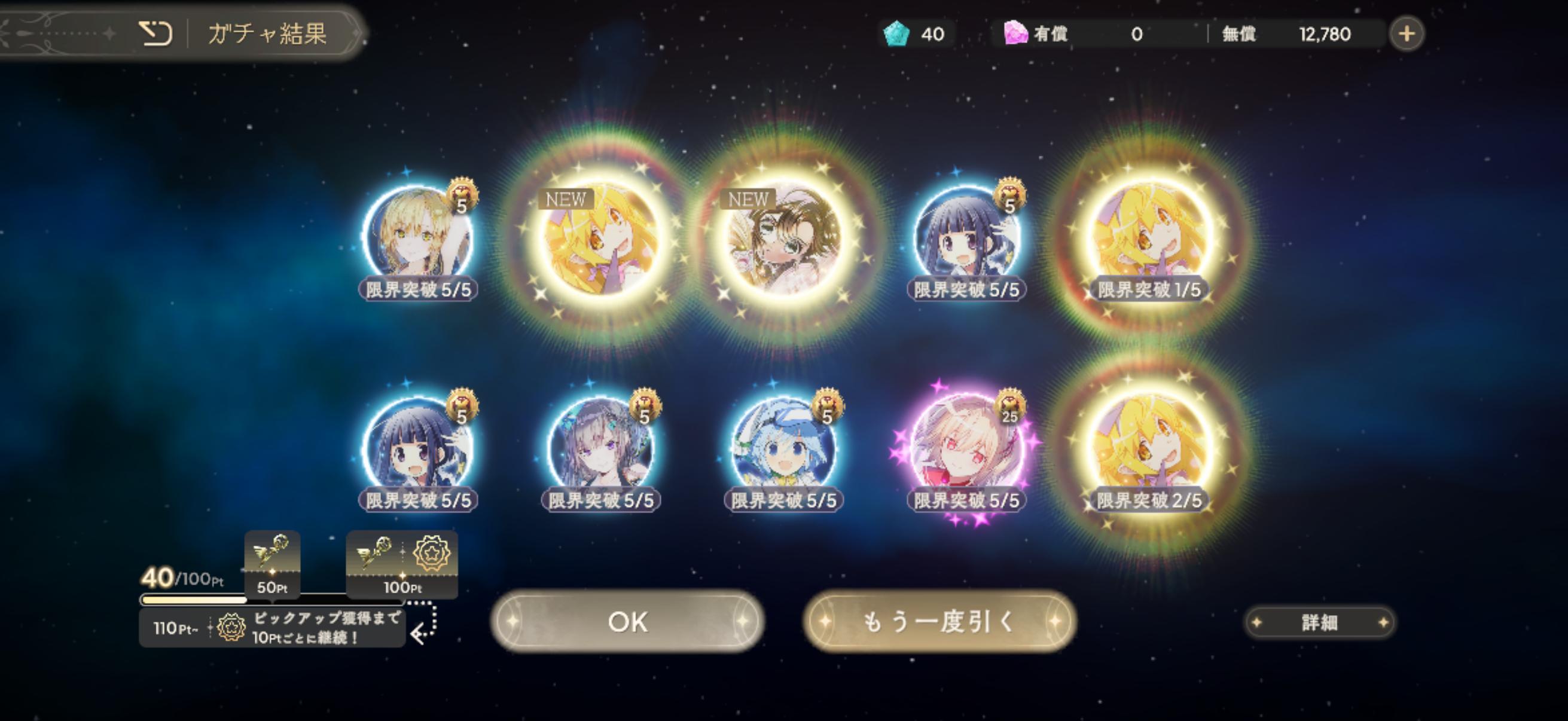 | … | 33926/04/06(月)13:58:33No.1417808469+鍵はいつものやつだったけどもらった石で10連したらふうかちゃん出たので許したるの〜 |