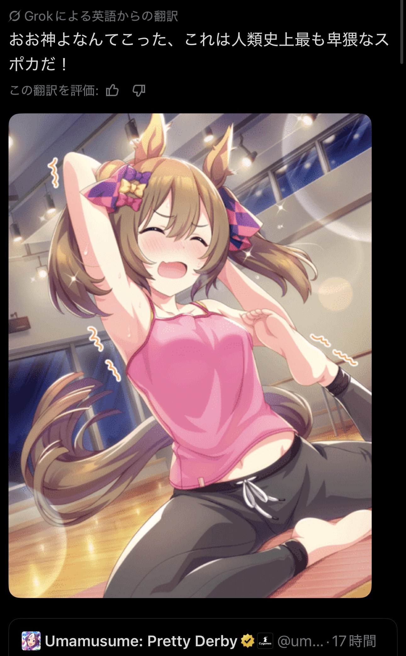 | … | 626/04/06(月)12:34:07 ID:pEocDJ16No.1417790406+グラスにスズカさんが映ってる方も好きです |