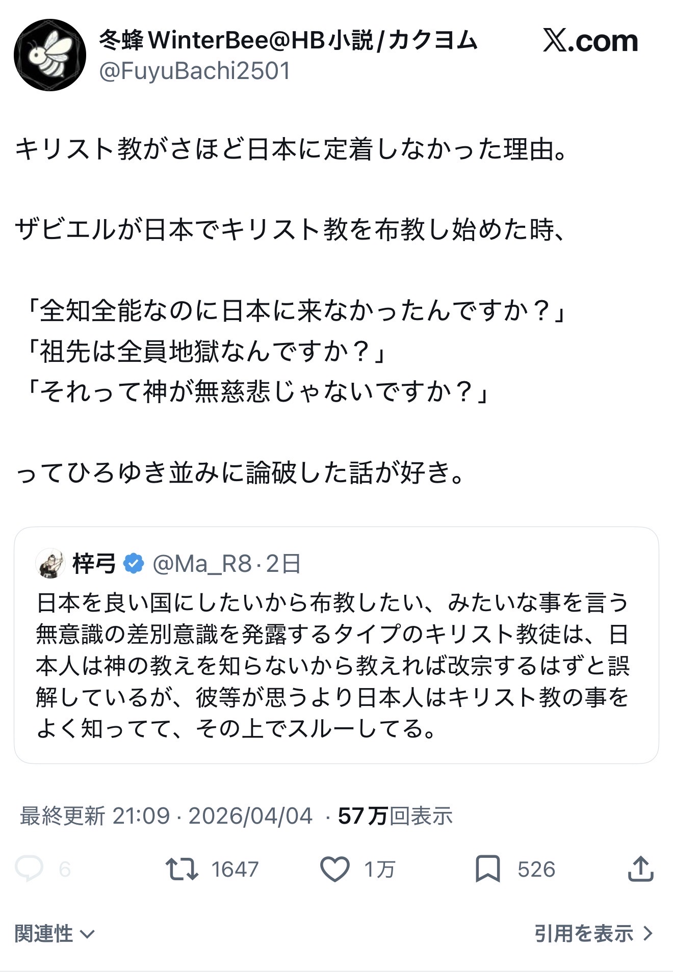 | … | 8026/04/06(月)15:36:59No.1417827577そうだねx8天草四郎が宗教関係ないとか謎のこと言ってるの何のせいだ…? |