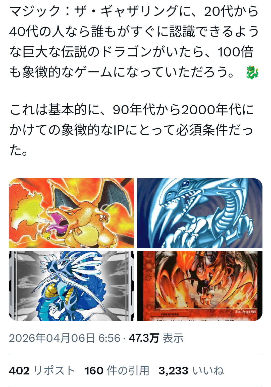 | … | 87826/04/06(月)20:07:12No.1417898249+>マジック遊戯王には真のドラゴンの威厳があるから |