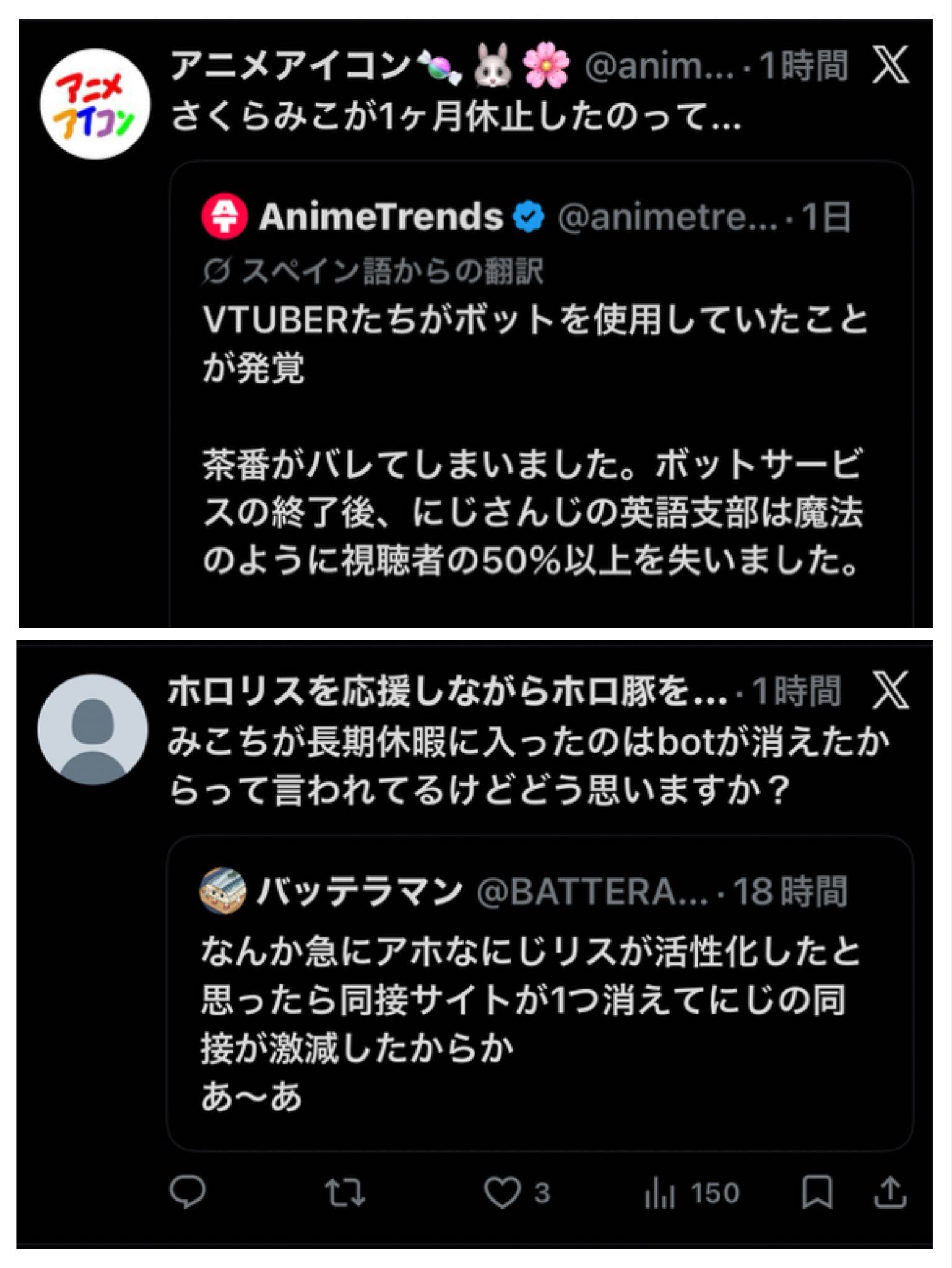 | … | 12726/04/06(月)21:16:56No.1417925041そうだねx1同接をbotで盛ってた方がにじさんじだよ |