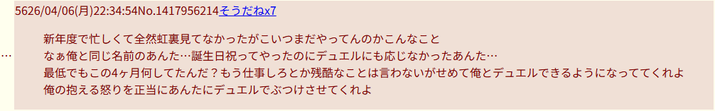 誕生日の頃からずっと俺は同じ名前のあんたに怒りをデュエルでぶつけたいのにあの頃からずっと逃げるのか