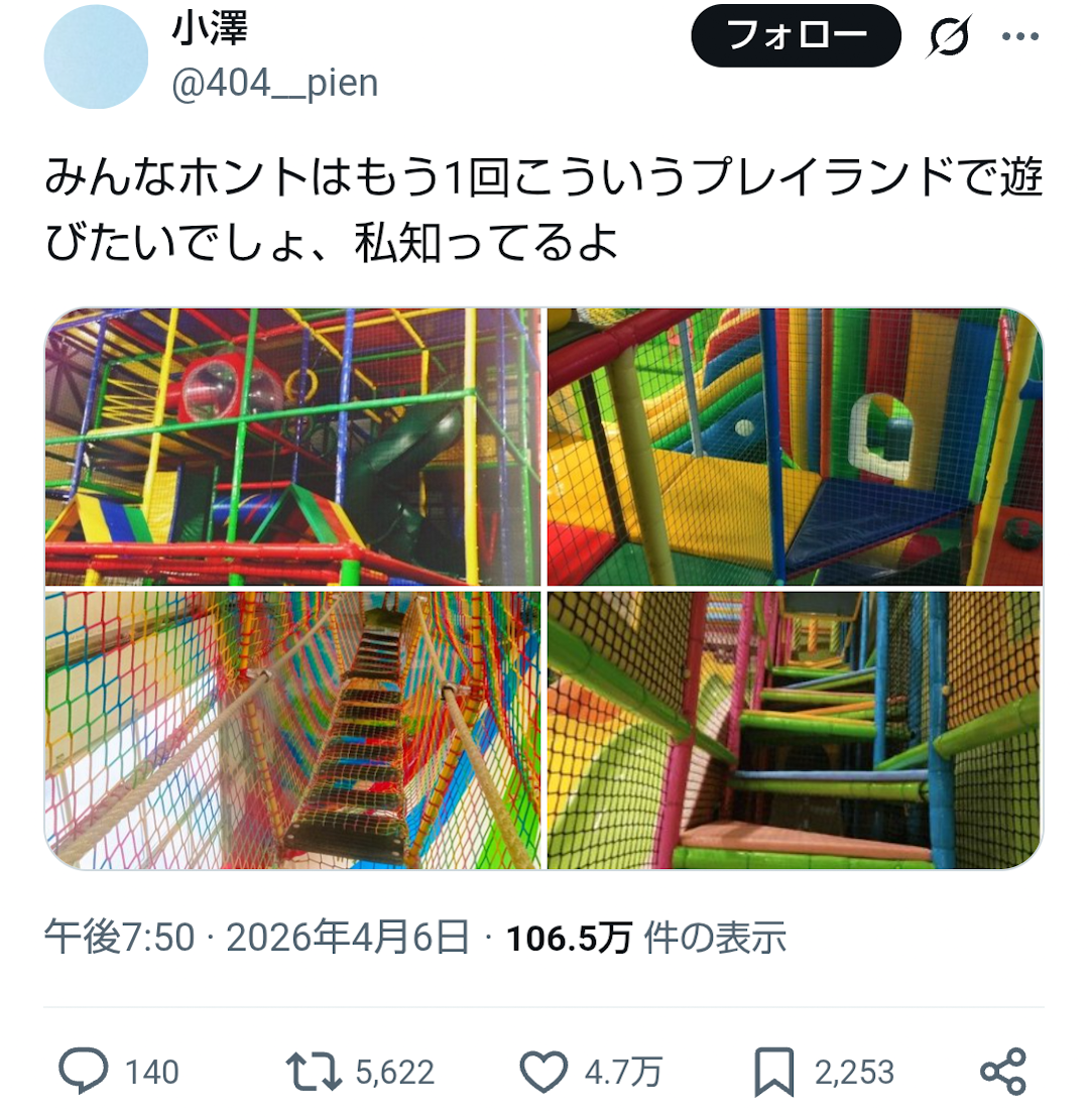 | … | 2626/04/07(火)02:27:54No.1418012449+>子供を持てば白い目で見られずにこういうところで遊べるんだよな… |