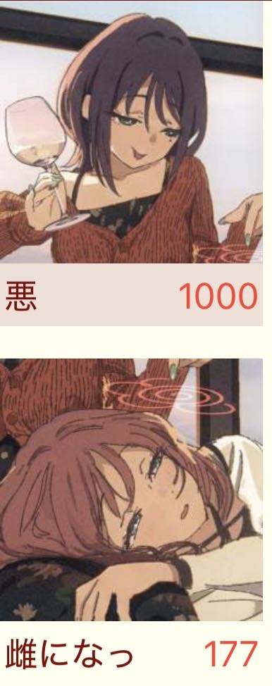 | … | 4226/04/07(火)07:33:20No.1418025720+>彩葉酒弱派閥に致命的なダメージが入った 酒の種類が匂わせなので芦花ががぶがぶ飲んでダウンして弱いの自覚してるからちょい飲みだけで介護してた線でまだ行ける…! |