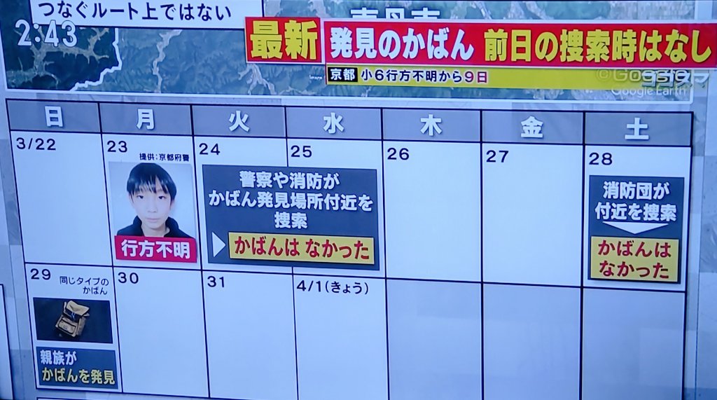 | … | 15326/04/07(火)13:45:50No.1418089626+遭難の可能性が大きかったから情報公開してたわけでリュックが出てきた時点で事件性が出てきたから事件に切り替わって情報公開しなくなった |