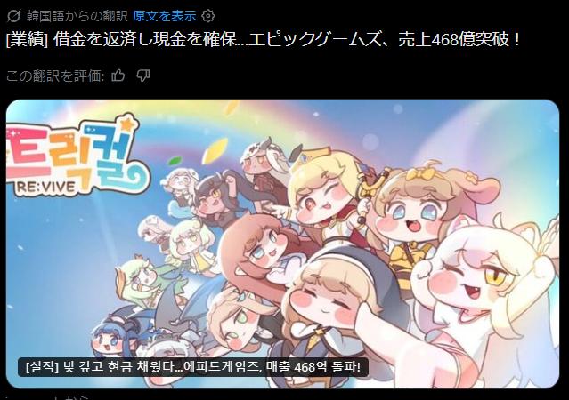 | … | 77326/04/07(火)14:41:17 ID:8dgPOQvENo.1418099643+468億ウォン(50億円弱)稼がないと黒字転換できないって冷静になるとめちゃくちゃ分の悪いギャンブルにゃん |
