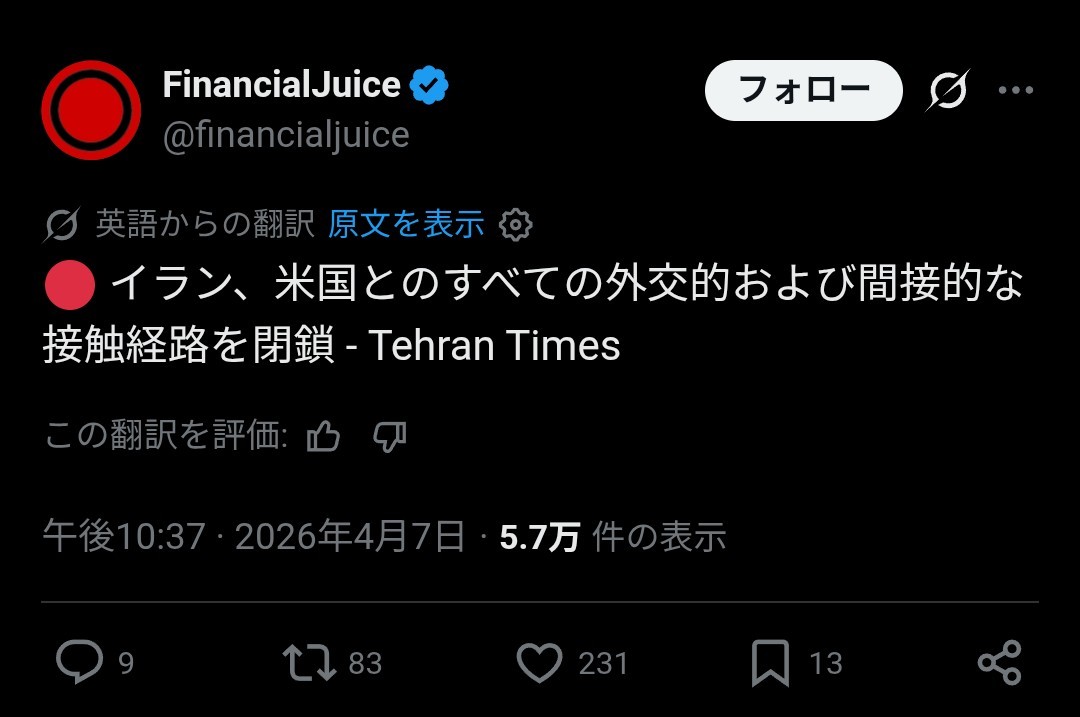 | … | 26126/04/08(水)00:26:06No.1418268015+もう撃ち合い始まって原油先物上がってるねー |