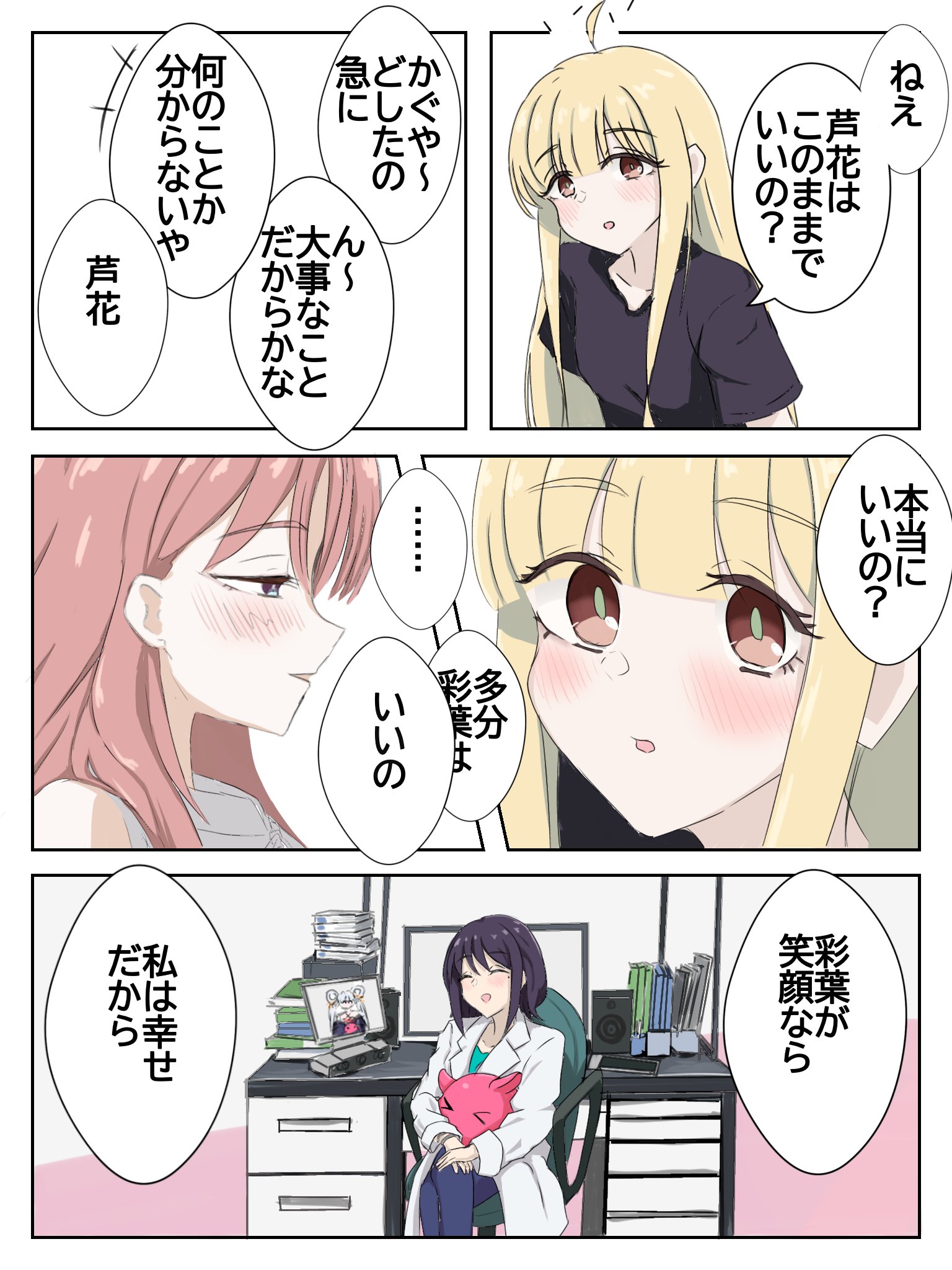 | … | 11226/04/08(水)09:19:12No.1418316209そうだねx2仮に芦花の気持ち知ってるヤチヨだとしても彩葉を譲る気はないのがいい |