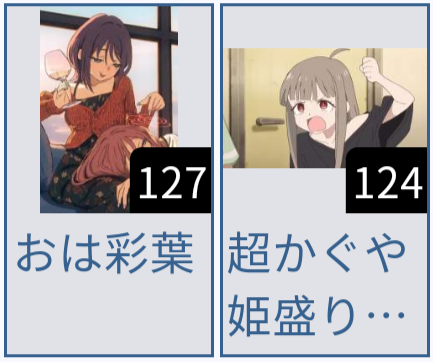 | … | 8626/04/08(水)09:05:15No.1418314113そうだねx1芦花が負けてるのはかぐや関係ないと思うぜ |