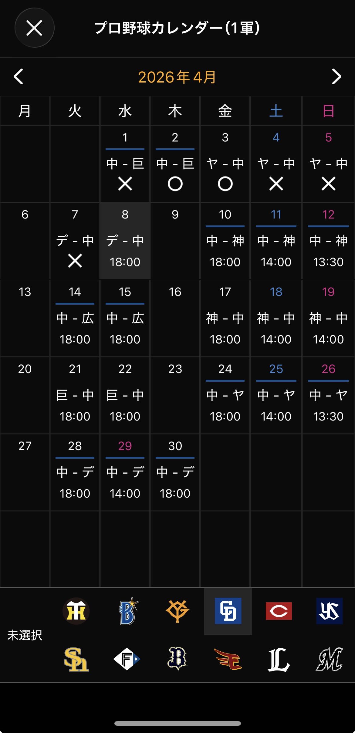 | … | 24726/04/08(水)11:05:29No.1418335656+>見たらマジで4月スカスカ日程だな中日 |