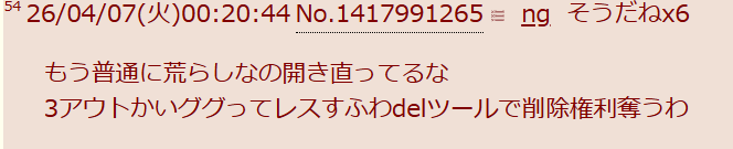 | … | 2626/04/08(水)10:57:54No.1418334244+荒らし行為自体が自己PRという事故 |