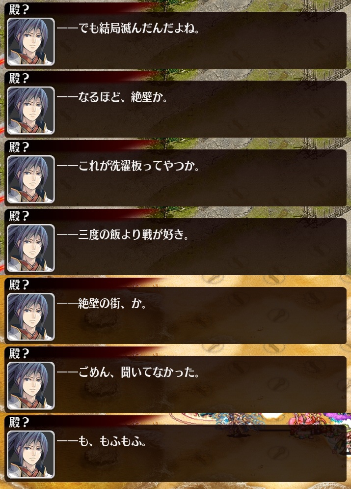 | … | 58226/04/08(水)17:57:44No.1418418528+>殿は本気出すと超つよいのだわ! マップでは? |