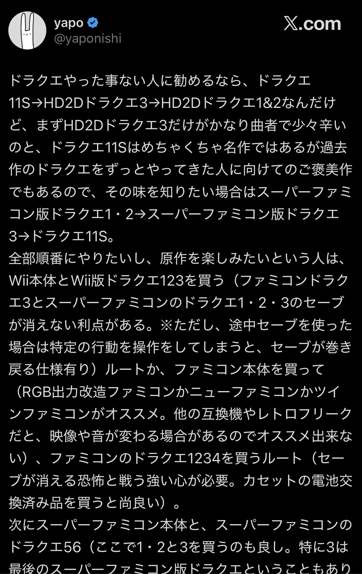 | … | 73526/04/08(水)19:55:23No.1418453619+>SFCは最低限の環境だけは安く整うけどセーブは消える |