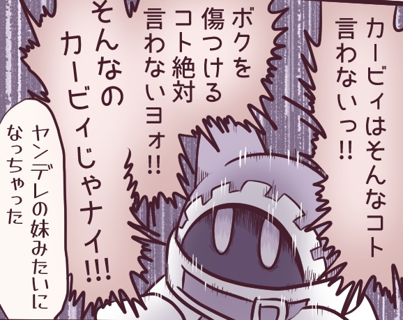 | … | 4326/04/08(水)23:54:06No.1418555528+マルクは自分を傷付けないとかは言わない間違ったことした時にちゃんと成敗してくれないカービィは解釈違いだからな |