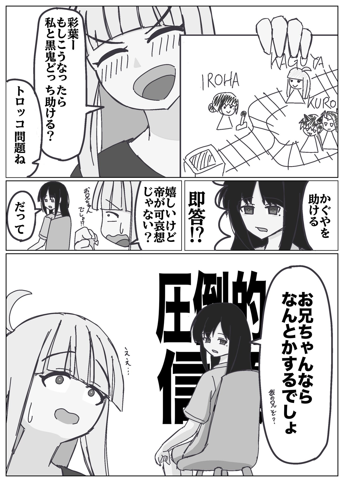 | … | 5726/04/08(水)23:58:37No.1418556948+そんな強迫観念に捕らわれてた彩葉もかぐやの為に兄や友人と推しに頭下げて頼れるようになったよ |