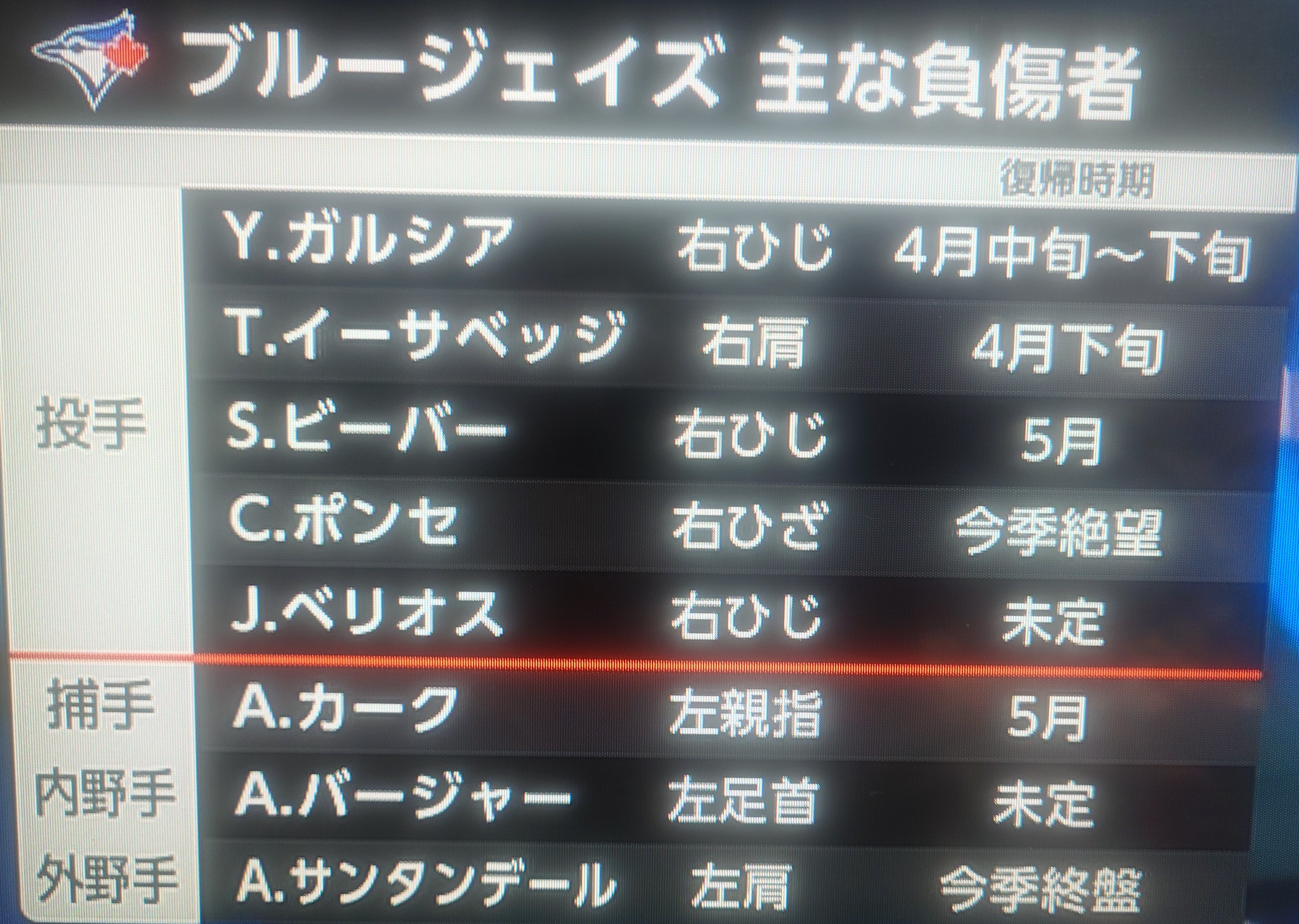 | … | 53126/04/09(木)07:11:45 ID:Vt5mj7YsNo.1418596590+>※ジェイズはインフルエンザがチーム内で猛威を奮っている最中です |