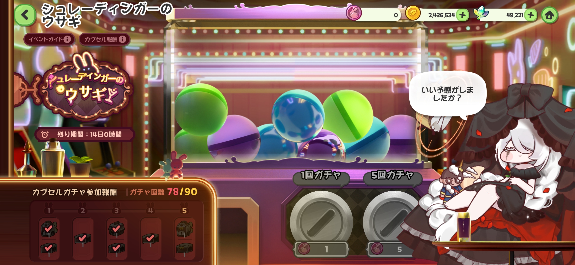 | … | 70826/04/09(木)12:37:37 ID:teo2s.toNo.1418650647+100回回したけどコーデ箱がまだ足りないにゃん |