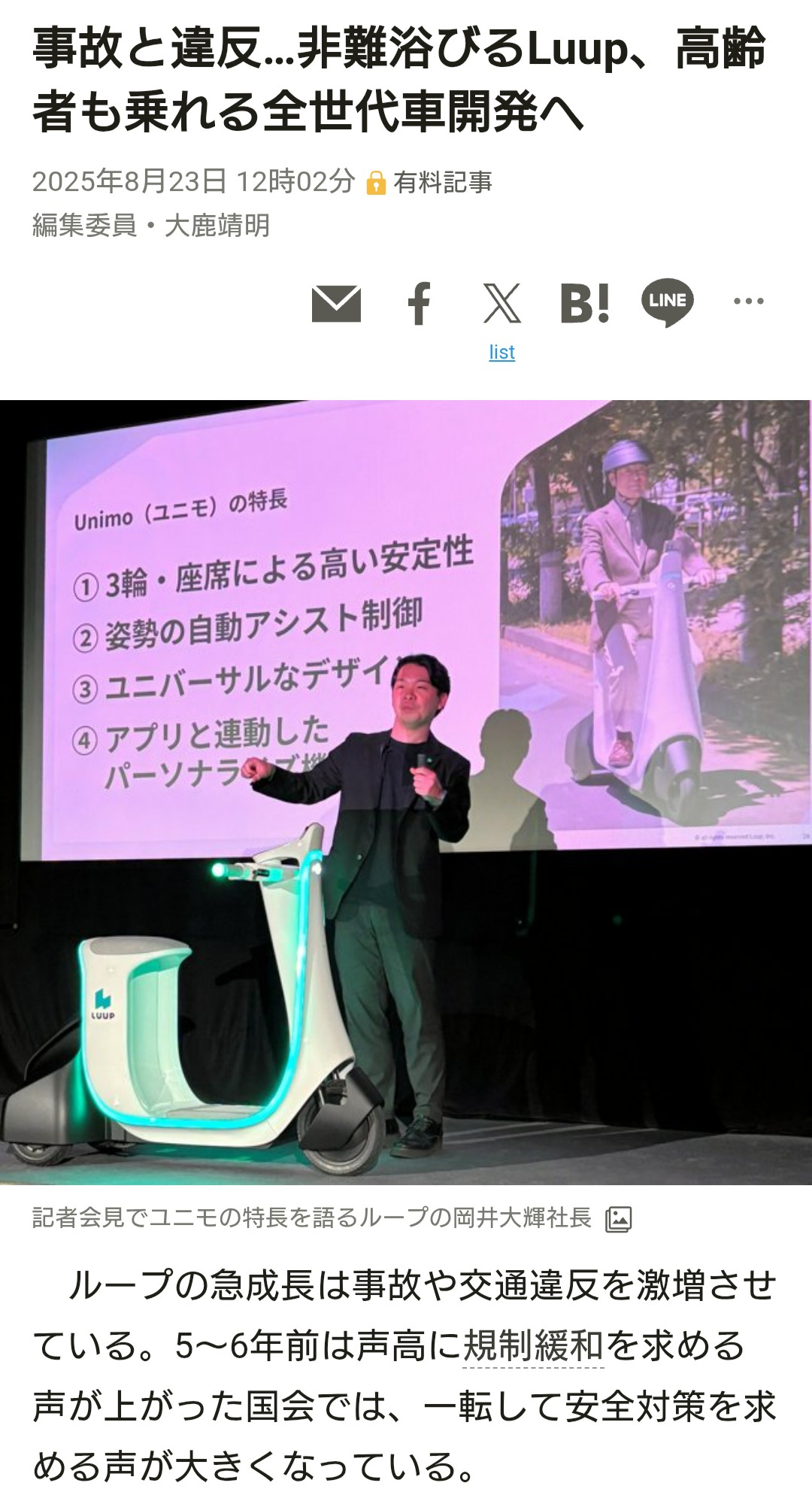 | … | 6726/04/09(木)10:47:33No.1418626682+>LUUPのすごいところは自転車と違って都市部にしかないから乗る層が限られてるのにこの違反数ってことだ |