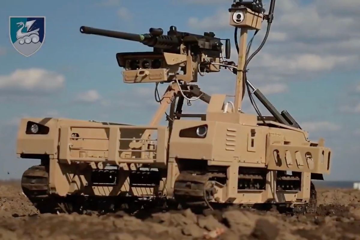 | … | 17326/04/09(木)16:52:46No.1418702960+>テルミットは兵站運搬車として、最大300kgの物資を積み、FPV(一人称視点)ドローン(無人機)が飛び交うなかを抜けて最前線に運べる。また、防御陣地の前方に出て地雷を設置したり、味方の襲撃(アサルト)に先立って敵の地雷原を除去したりすることもできるほか、武器(機関銃やグレネードランチャー)を搭載して火力支援を行うことも可能だ。 |