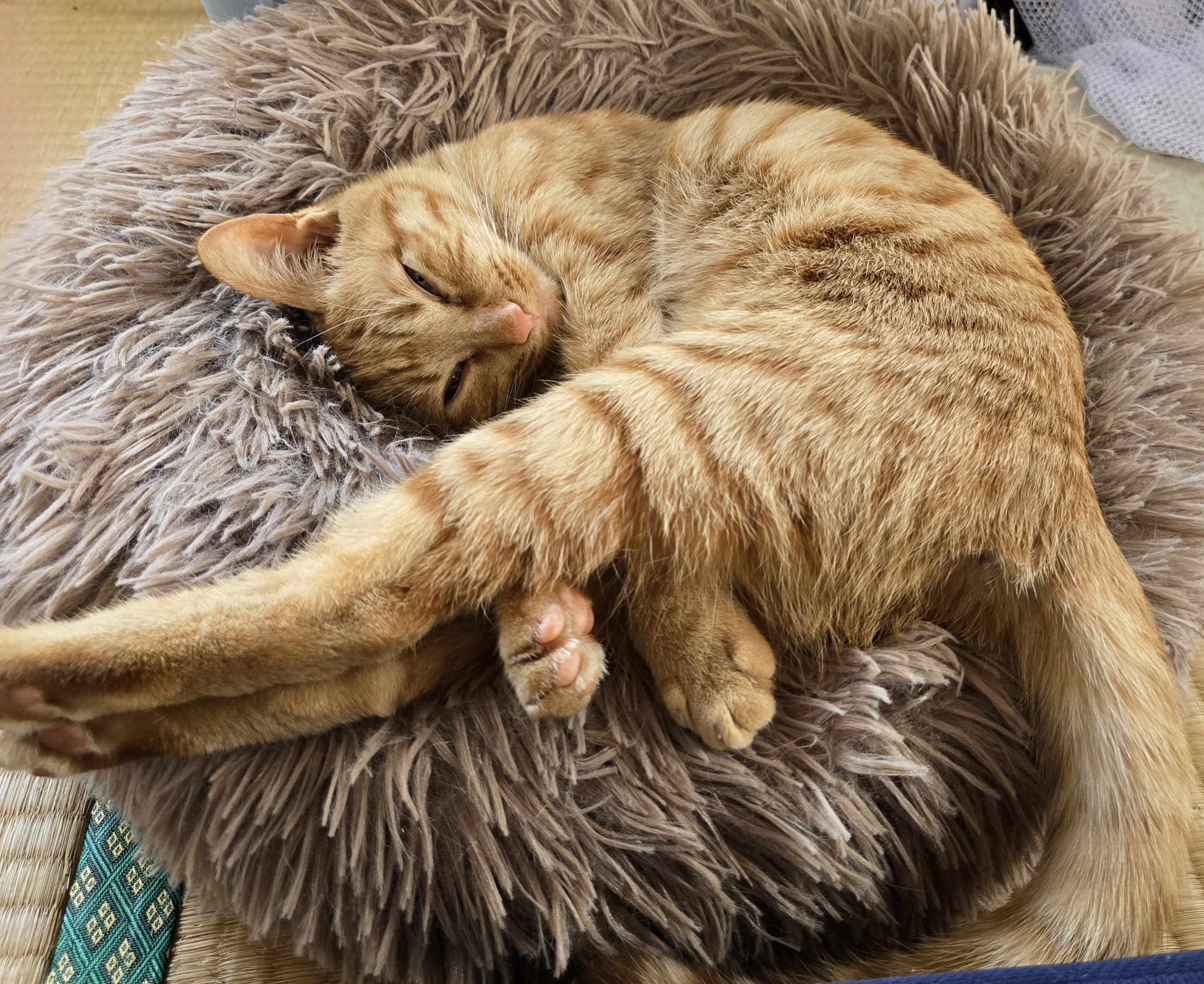 飼い主の膝で爪研ぎキャッツ!
