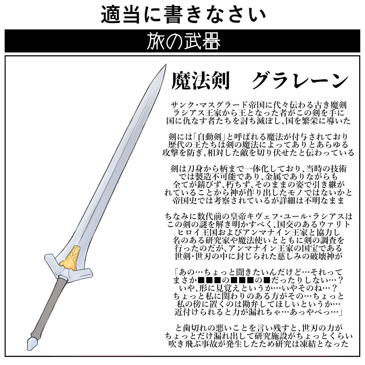 | … | 5126/04/09(木)23:30:00No.1418828609+>レス遅くなったけど大剣がボロボロな理由は新しい剣を買うお金も祭壇に突っ込んでしまうからですね |