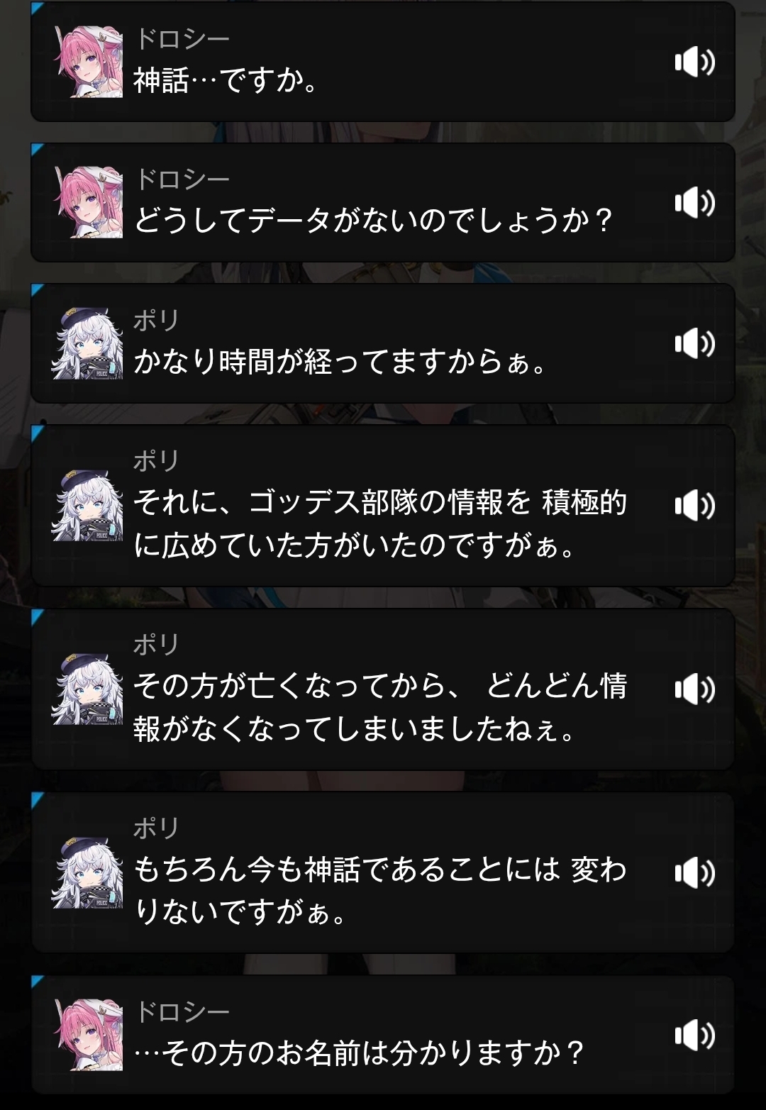 | … | 93726/04/10(金)04:13:06No.1418872755+>そういやなんか地味に謎なシックス・オーのお付きのニケいるけどあいつなんだろな |