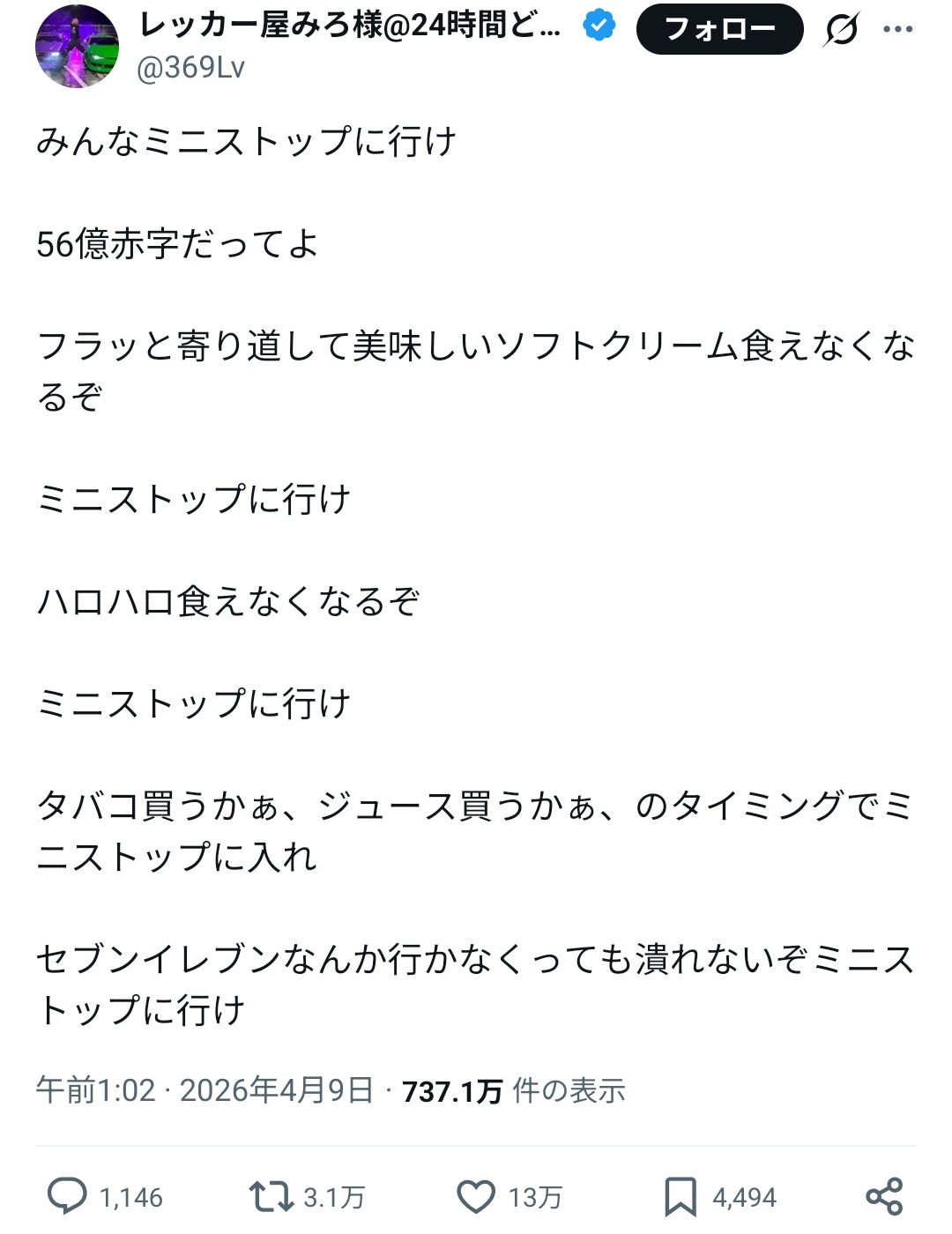 近所のミニストップ潰れて最寄り店が遠い