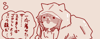 | … | 4626/04/10(金)08:29:26No.1418887355+>1775775416575.png よく考えたら犬がカッパを着てる絵って初めて見たかもしれない… |