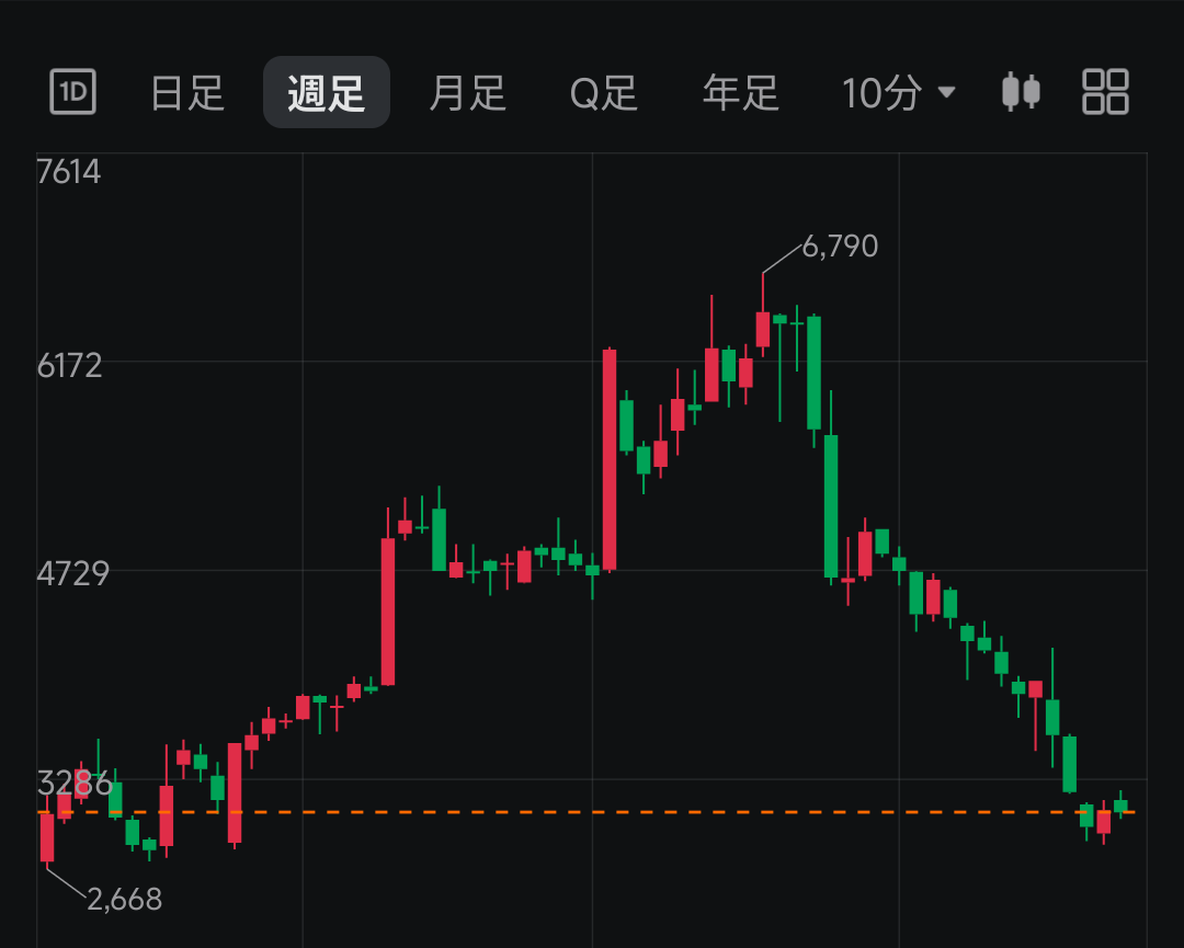 | … | 126/04/10(金)11:25:57No.1418914491そうだねx62週足見てもな |