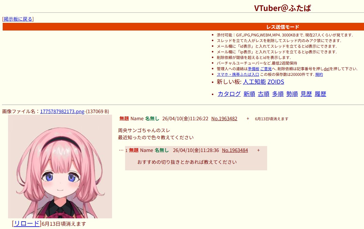 | … | 5326/04/10(金)12:41:50No.1418932984+>荒れることなく完走したホロライブスレ |
