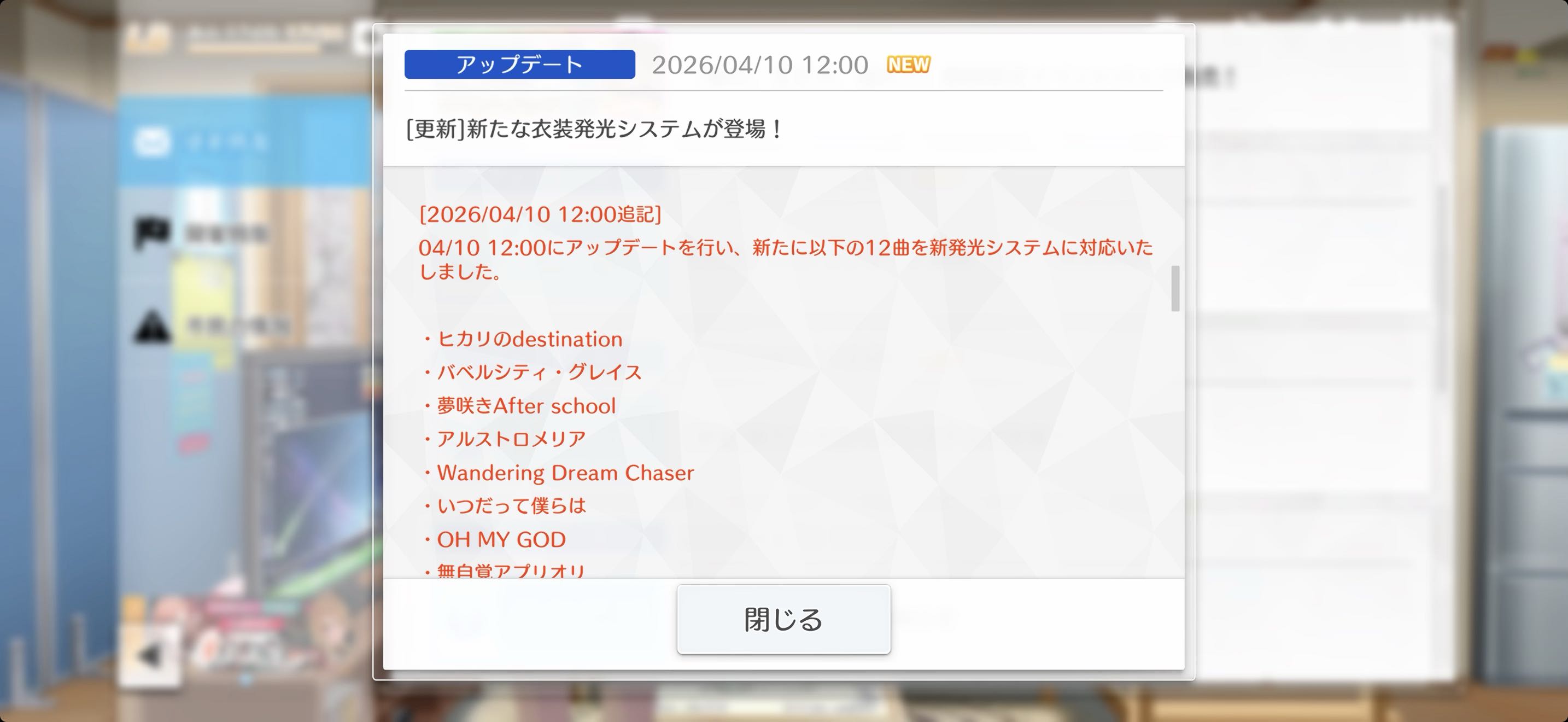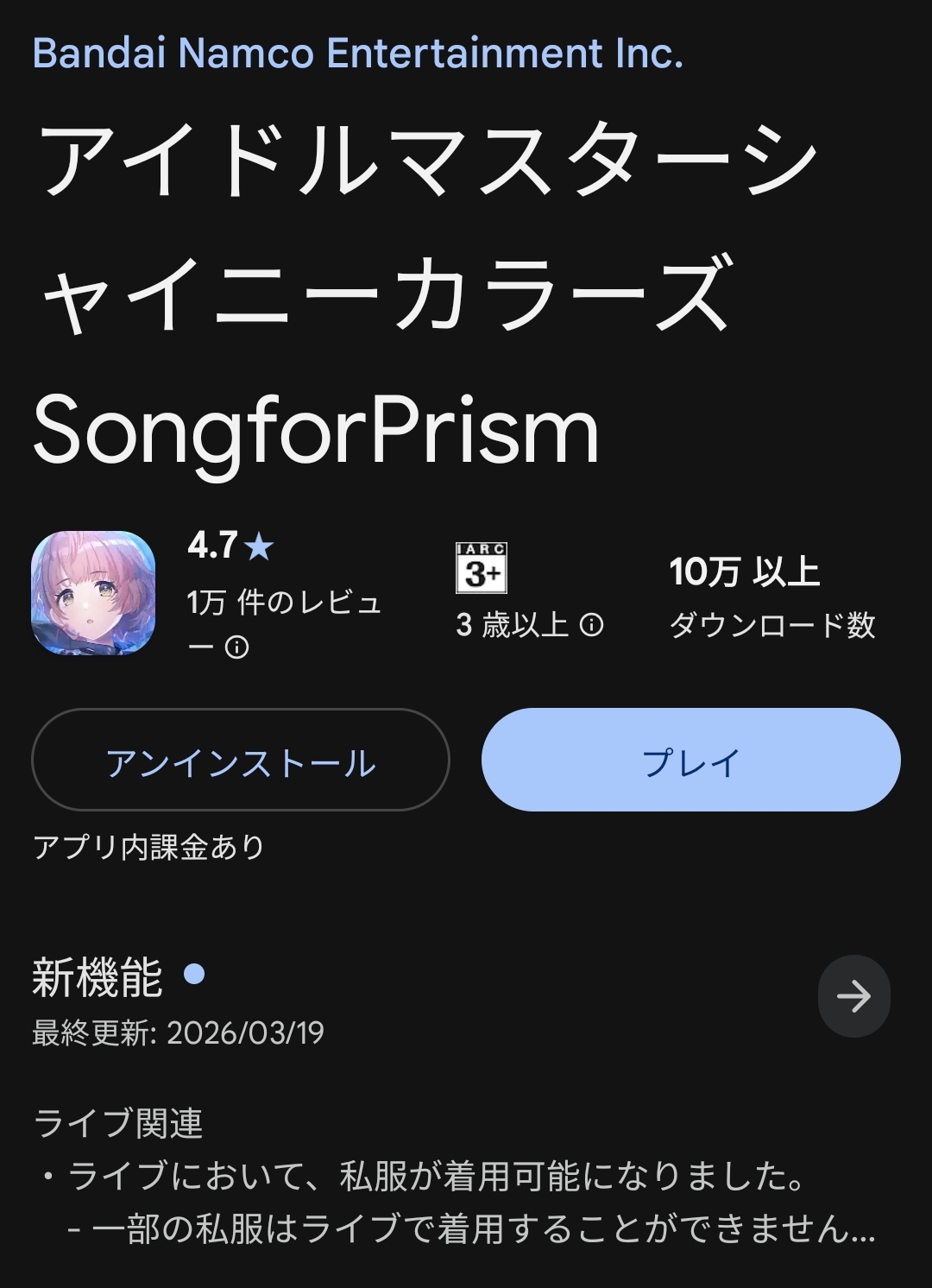 | … | 7026/04/10(金)12:31:48No.1418930016+>シャニソンの最終アプデが3/30で追加のアプデないけどみんな追加のアプデきてるん? iosだけどまだだ |
