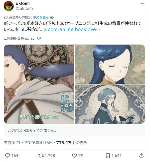 https://x.com/anime_booklove/status/2042498547766206701このスレは古いので、もうすぐ消えます。