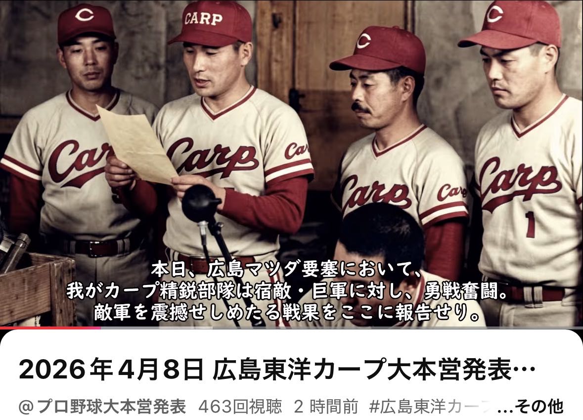 | … | 7026/04/10(金)19:55:03 ID:NNtOeuiQNo.1419039346+>>8安打1点の球団を見下しに来ました |