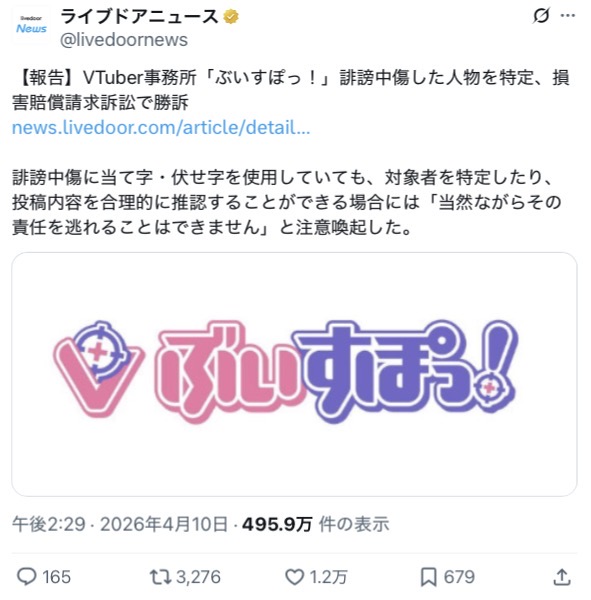 | … | 726/04/11(土)00:15:26No.1419146054そうだねx3>なお、この人物が行った投稿は、誹謗中傷に当たる文言を直接記載するのではなく、「当て字」を使用しておりました。 |