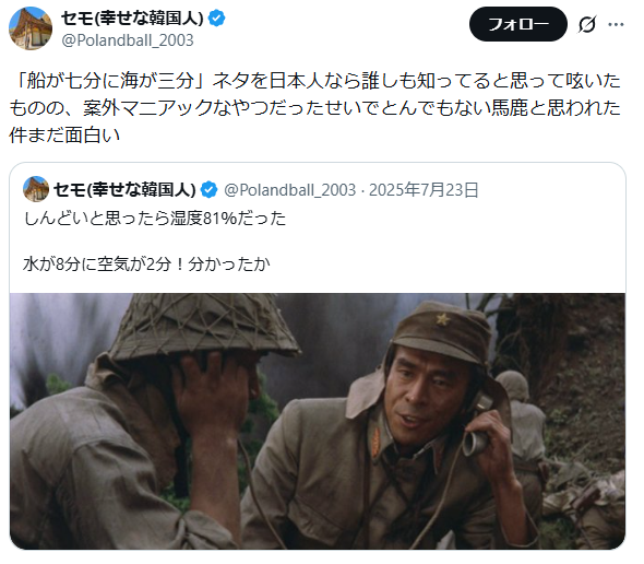 | … | 27626/04/11(土)09:19:25No.1419203743+めっちゃ煽られてるな韓国 |