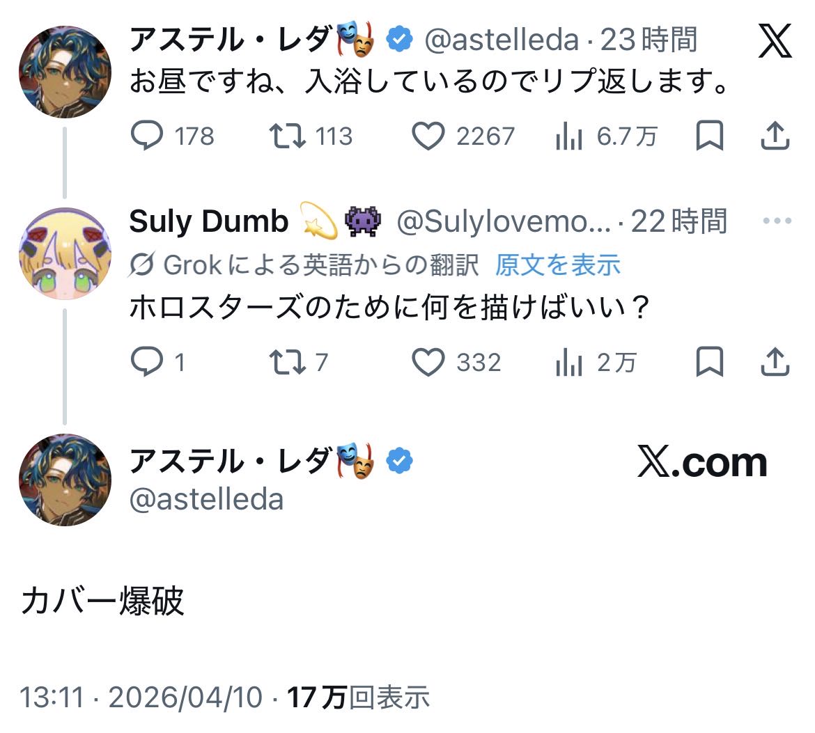 | … | 126/04/11(土)11:52:15No.1419235001そうだねx2<カバー株式会社 誹謗中傷通報専用窓口> |