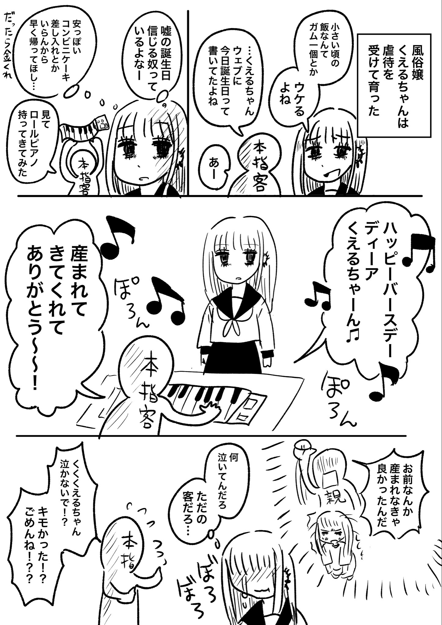 | … | 4826/04/11(土)14:30:09No.1419277322+>俺も風俗嬢に差し入れでAmazonギフトカード渡してるけど今度からピアノ弾くわ |
