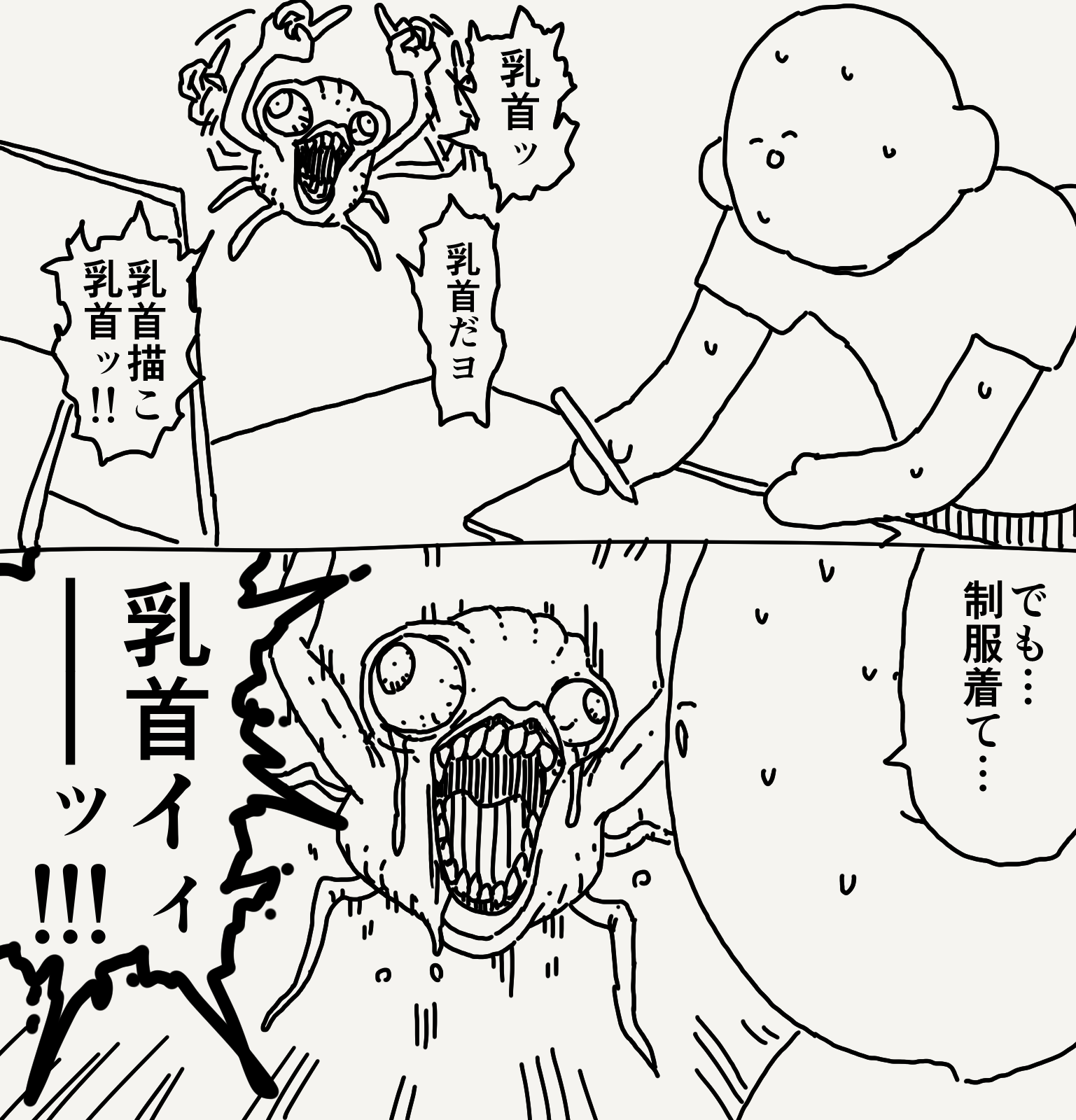 | … | 5626/04/11(土)16:26:41No.1419309106+なんで乳首スレなのに化け物のほうが手書き多いんだよ |