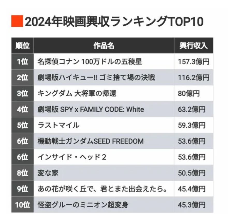 | … | 6626/04/11(土)16:09:32No.1419304564そうだねx9コナンはこのランキングに入るレベルの興行収入を毎年お出しできてるのが一層凄えよなと思う |