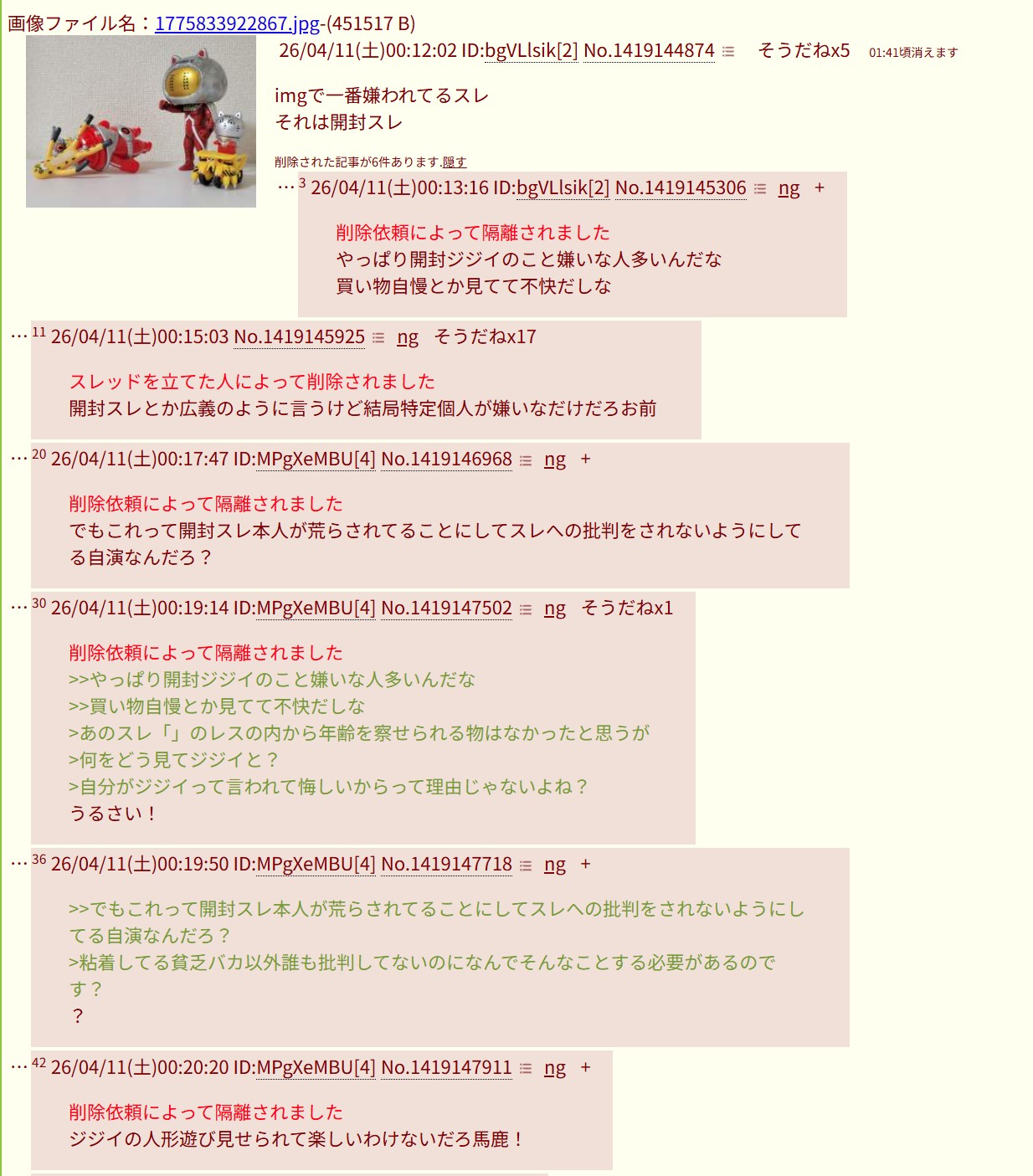 かまってほしいならそれこそスレ画みたいに平和な感じで開封スレでもやればいいのにそんなむずかしいことじゃないだろ