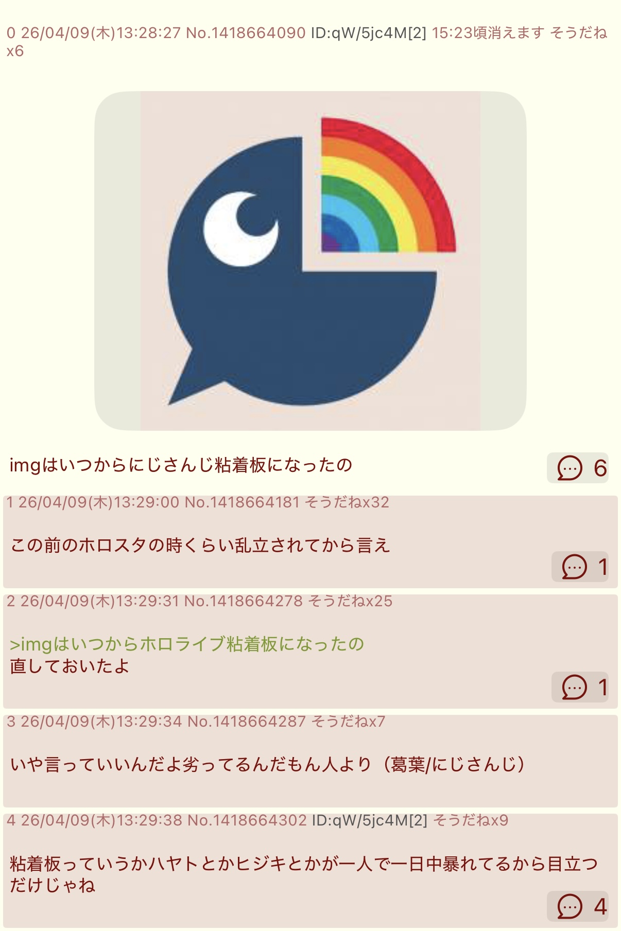 | … | 8026/04/11(土)20:00:07No.1419376006そうだねx2>まだにじさんじファンっているんだな |