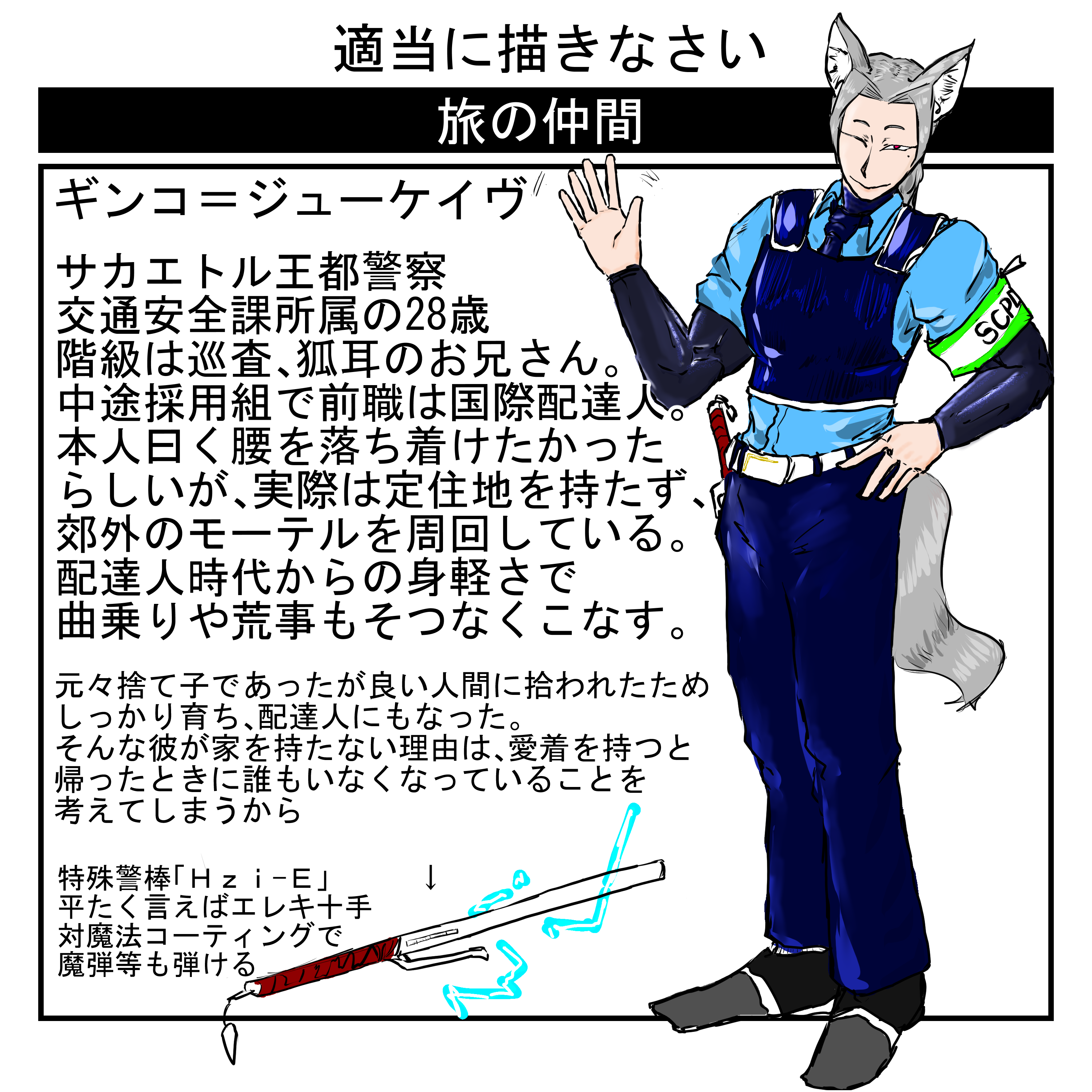 旅のケモ耳お兄さん警察官を描きましたこのスレは古いので、もうすぐ消えます。