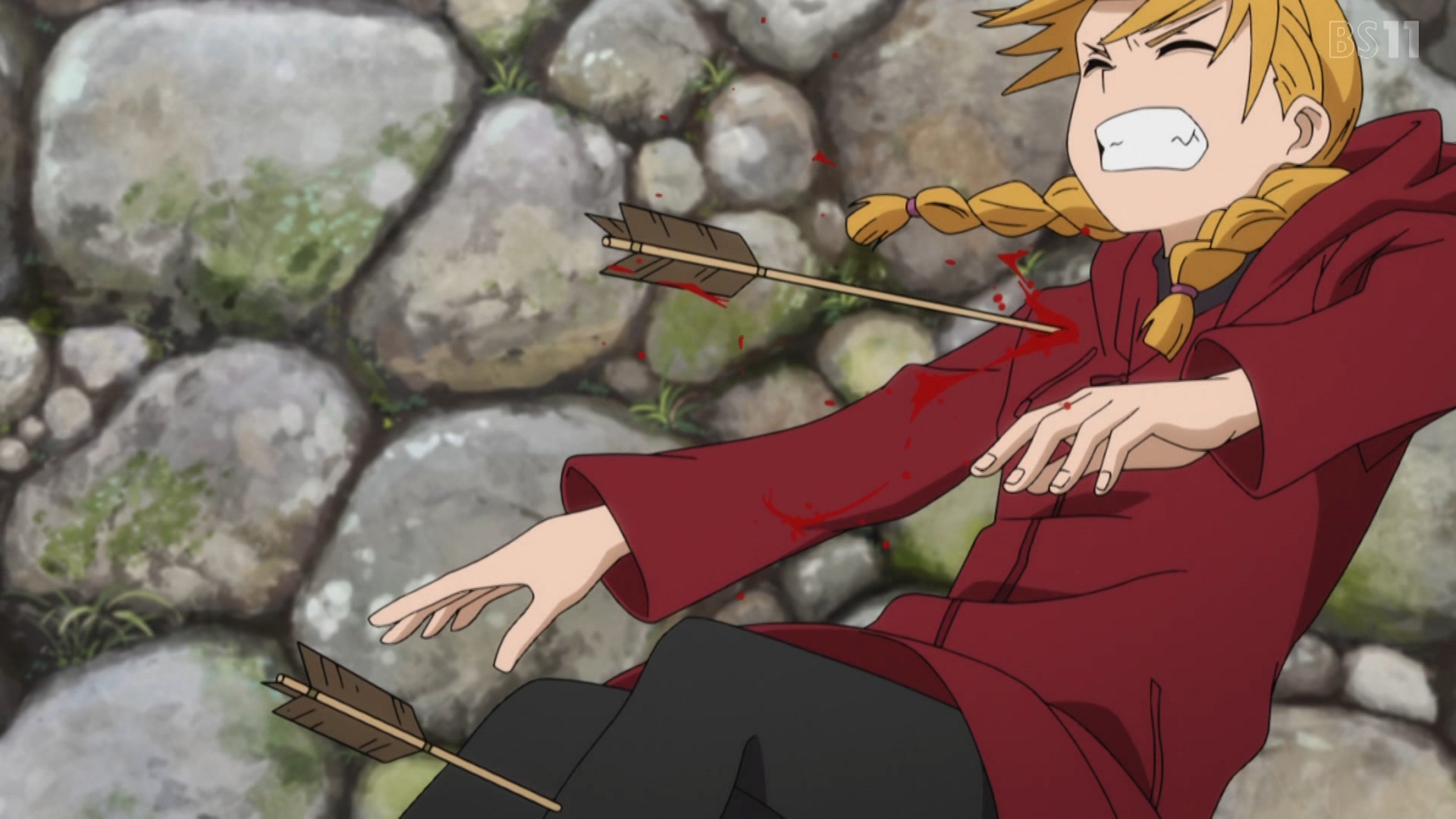 >肩に鏃入ってるとか痛すぎて動けんだろ