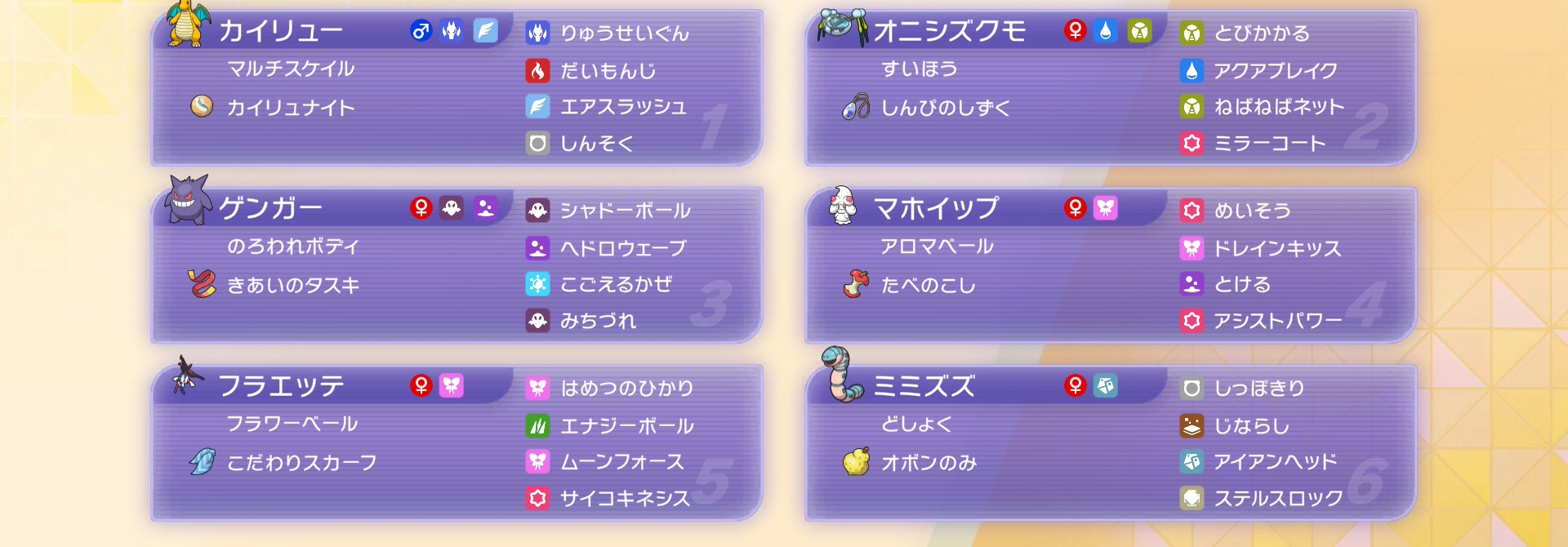 | … | 15726/04/12(日)00:30:31No.1419481507+初手襷ステロにメガスターミー2手目に高速スピンがいい感じに嵌まってる |