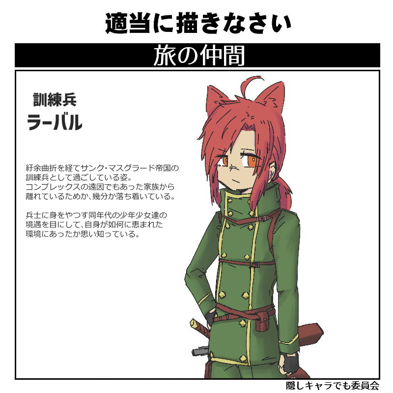 | … | 5426/04/12(日)01:16:29No.1419494216そうだねx6そういや正式に訓練兵バージョンをかいてなかったのを思い出して |