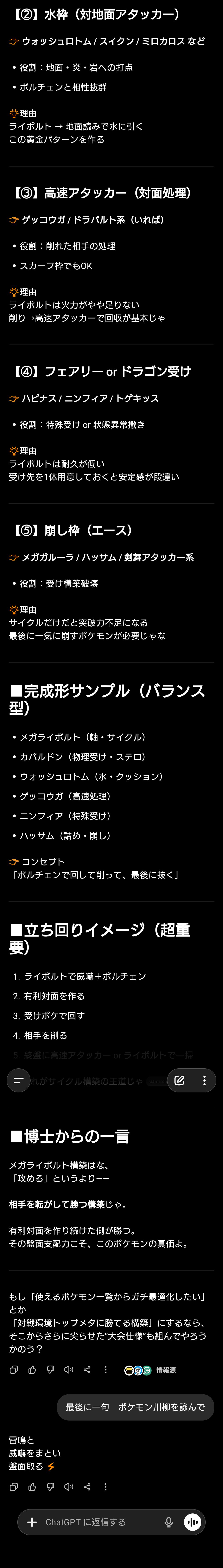 | … | 5626/04/12(日)00:57:18No.1419488730そうだねx4ポケモン対戦って毎回初期環境が1番楽しいよね |